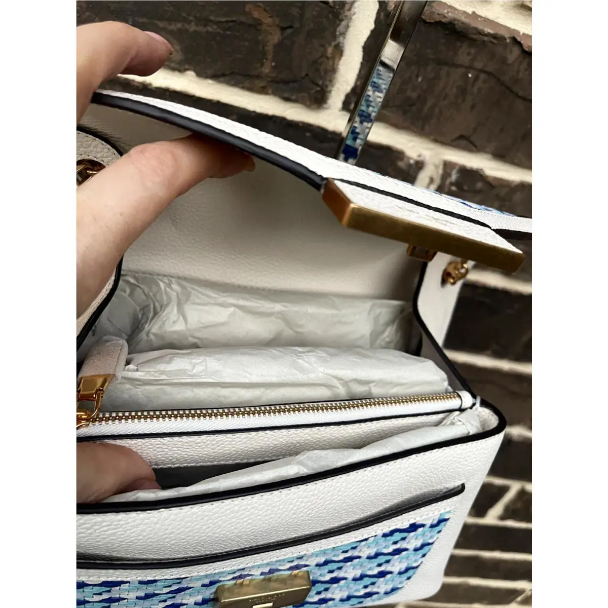 Kate Spade bag - Handle/Strap: White, Exterior: White, Blue, Lining: White, Beige (UPC: 196021300295)