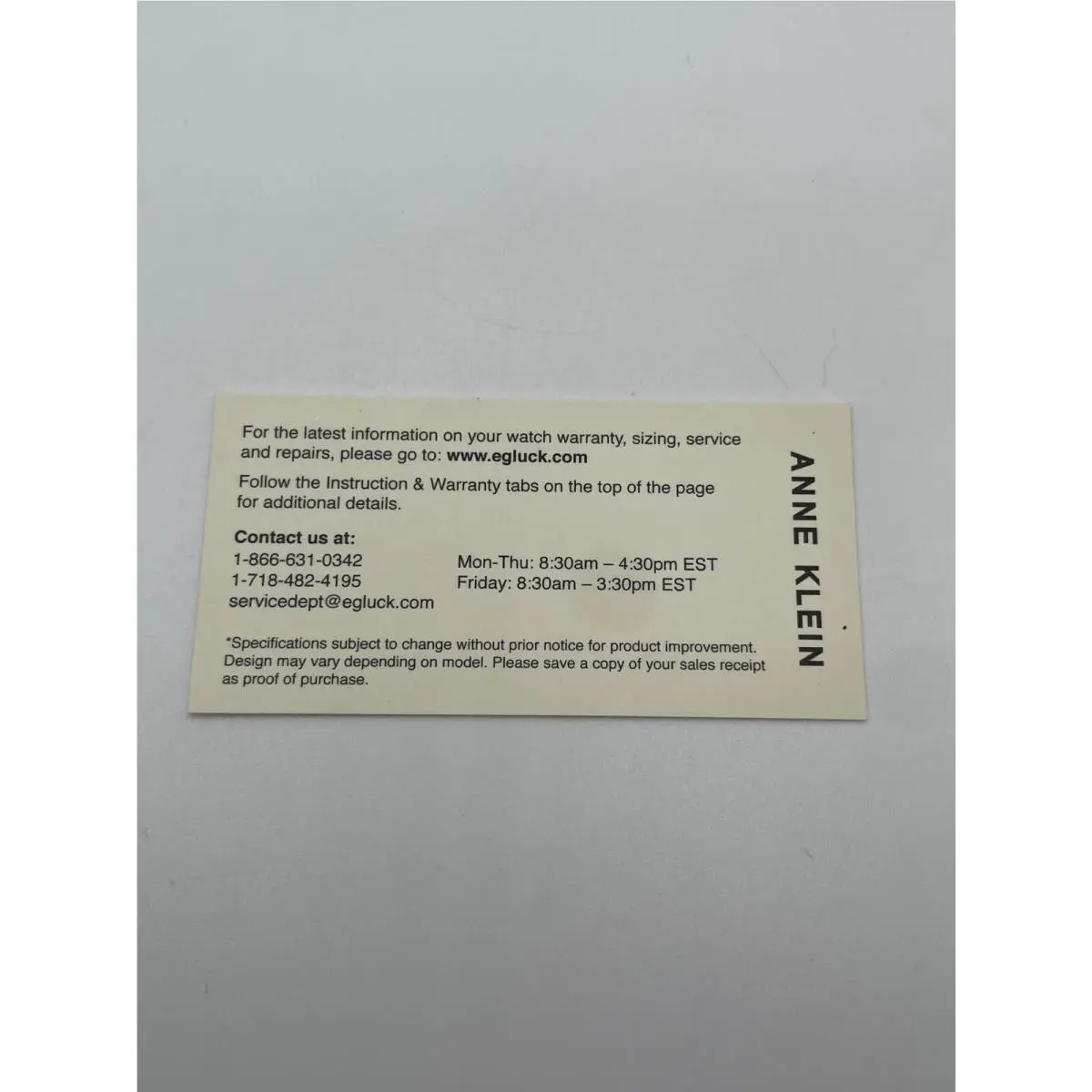 This Anne Klein item is covered by the manufacturer's warranty when applicable.